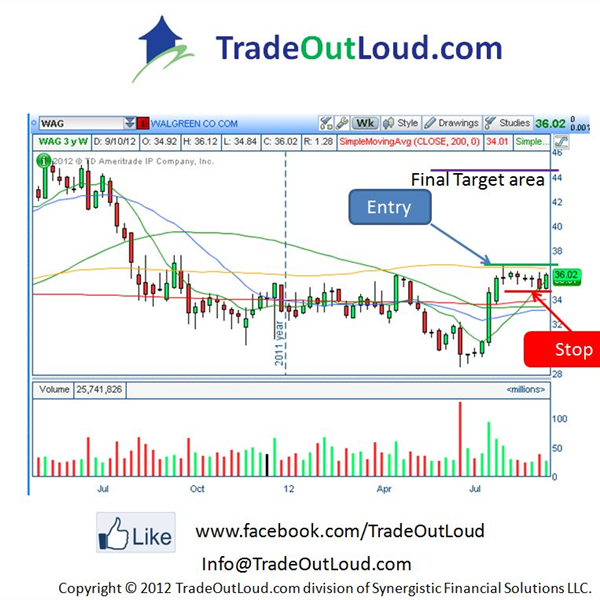 Set-up: base break out of weekly chart Strategy: LONG over $36.50 area, stop under $34.50 Target areas: 37.50, 38.00, 40.50, 42.00, 46.00 as a final target. Only take the trade if market indices remain strong!