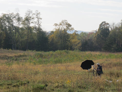 Arlene Boehm painting in a field at Olana, the Frederic Church estate. Photo by Elissa Gore